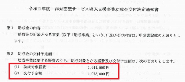 森山さんの交付決定通知。107万3000円が交付予定額となっている(赤枠は編集部)