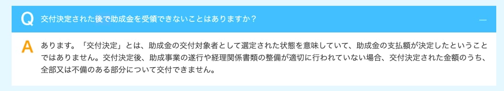 交付決定の額が必ずしももらえるわけではないとの注釈はある。不安に思って、公社に電話したという企業もあったが、「まさか不正もないのにゼロ円になるとは思わなかった」と話す(キャプチャは「非対面型」のウェブサイトより<https://www.tokyo-kosha.or.jp/support/josei/jigyo/hitaimen.html>)