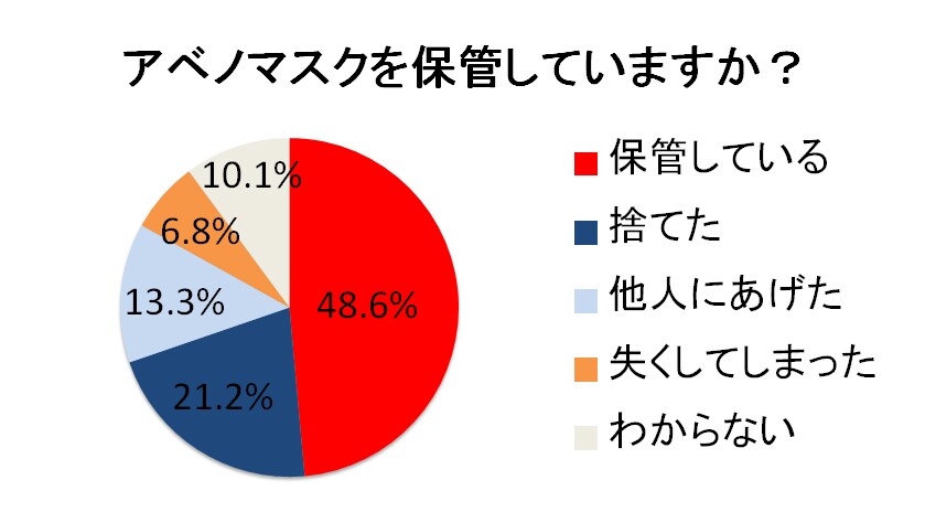 読者の9割近くがアベノマスクを使っていないが、「保管している」という人が半数を占めた。「記念品」「歴史的資料」と考える人が多かったようだ。